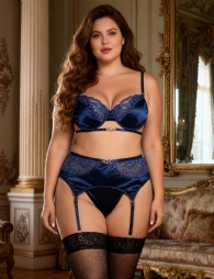 Home > Plus Size Bra Wholesale > Delicate lace Stitching Exquisite metal buckle Bra And Garter Panty Set