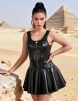 Product Name Black PU Leather Wide Shoulder Straps Heart Zipper Sexy Nightdress