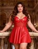 Home > Wholesale Plus Size Lingerie > Red PU Leather Mesh Sexy Suspender Leather Nightdress