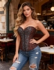 Standard Product Name: Brown, jacquard polyester-cotton, front center embroidery, side pleats, zipper, back tie design, 12 steel bones, comes with thong, S-6XL plus size, sexy strapless classical palace corset;