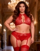 Home > Plus Size Bra Wholesale > Plus Size Sexy Hot Eyelash Red Lcae 3pcs Bra Panty Set
