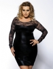 Home > Plus Size Pajamas Supplier > Black Long Sleeves PU Leather Lace Sexy Nightdress