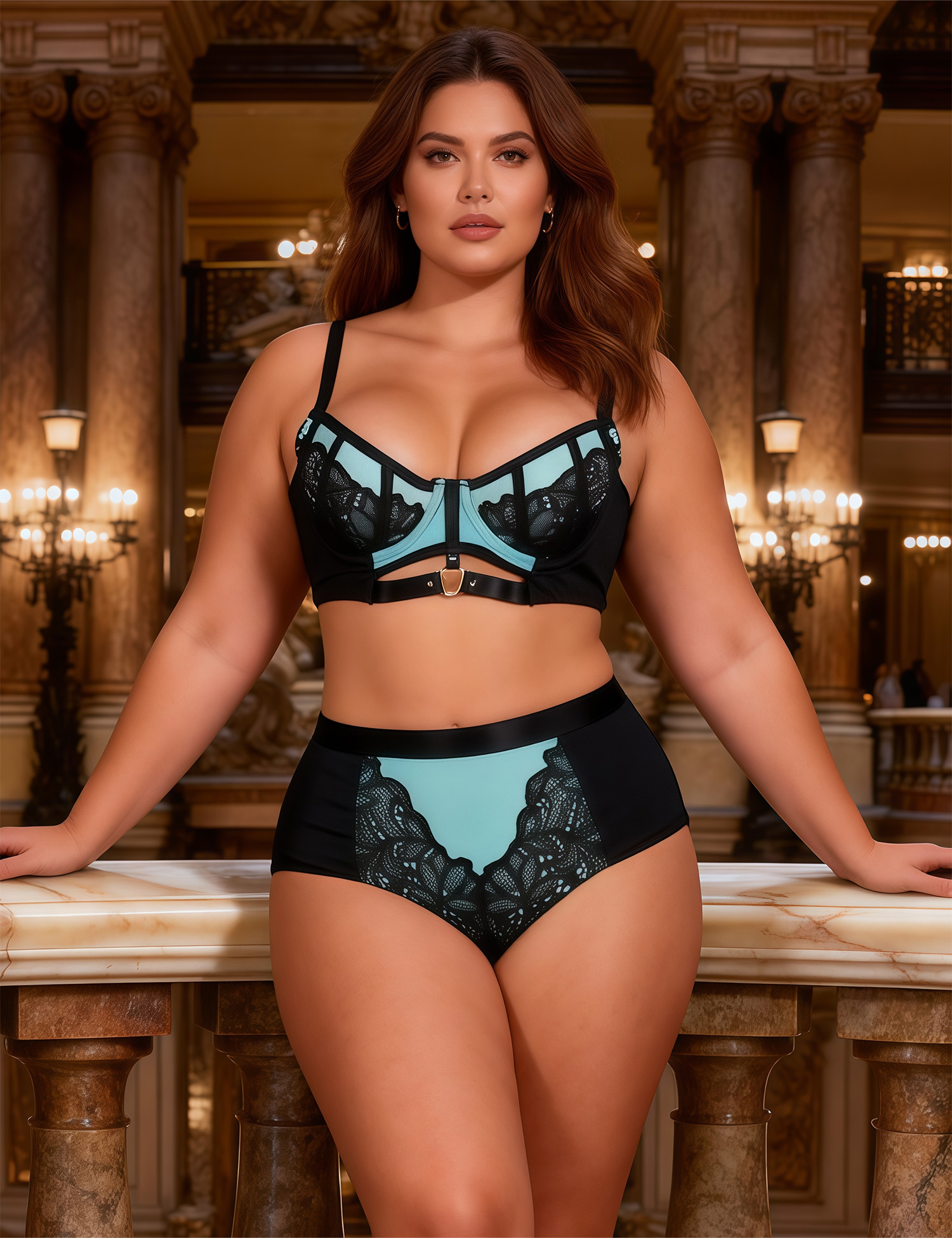 Home > Plus Size Bra Wholesale > Green Sexy Lace Mesh Push-up Bra Set