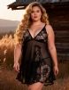 Home > Wholesale Plus Size Lingerie > Sexy Black Transparent V Neck Lace Plus Size Short Nightdress