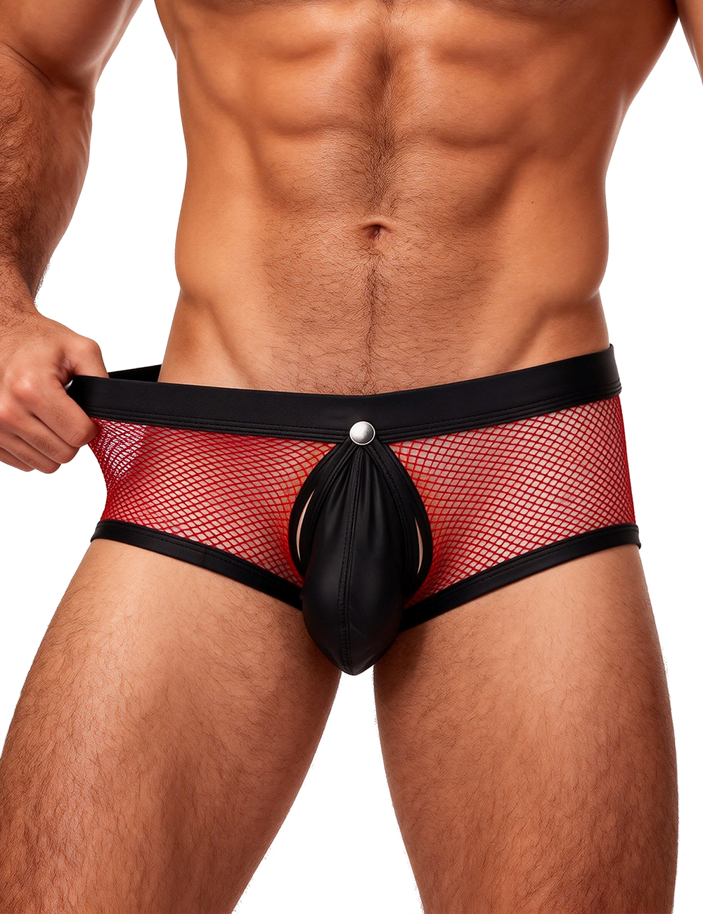 Product Name Red Sexy Mesh Openable Crotch Imitation Leather Men's Boxer Underwear