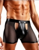 Home > Leather Men Underwear > Black Sexy Mesh Openable Crotch Imitation Leather Men's Boxer Underwear
