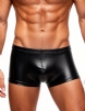 Main keywords: faux leather fabric, front U-shaped pouch design, enlarged waistband elastic, men`s boxer shorts.