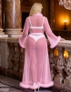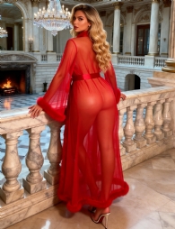 Home > Sexy Negligee > Red Sexy Mesh Imitation Mink Fur Trim Long Robe With Belt