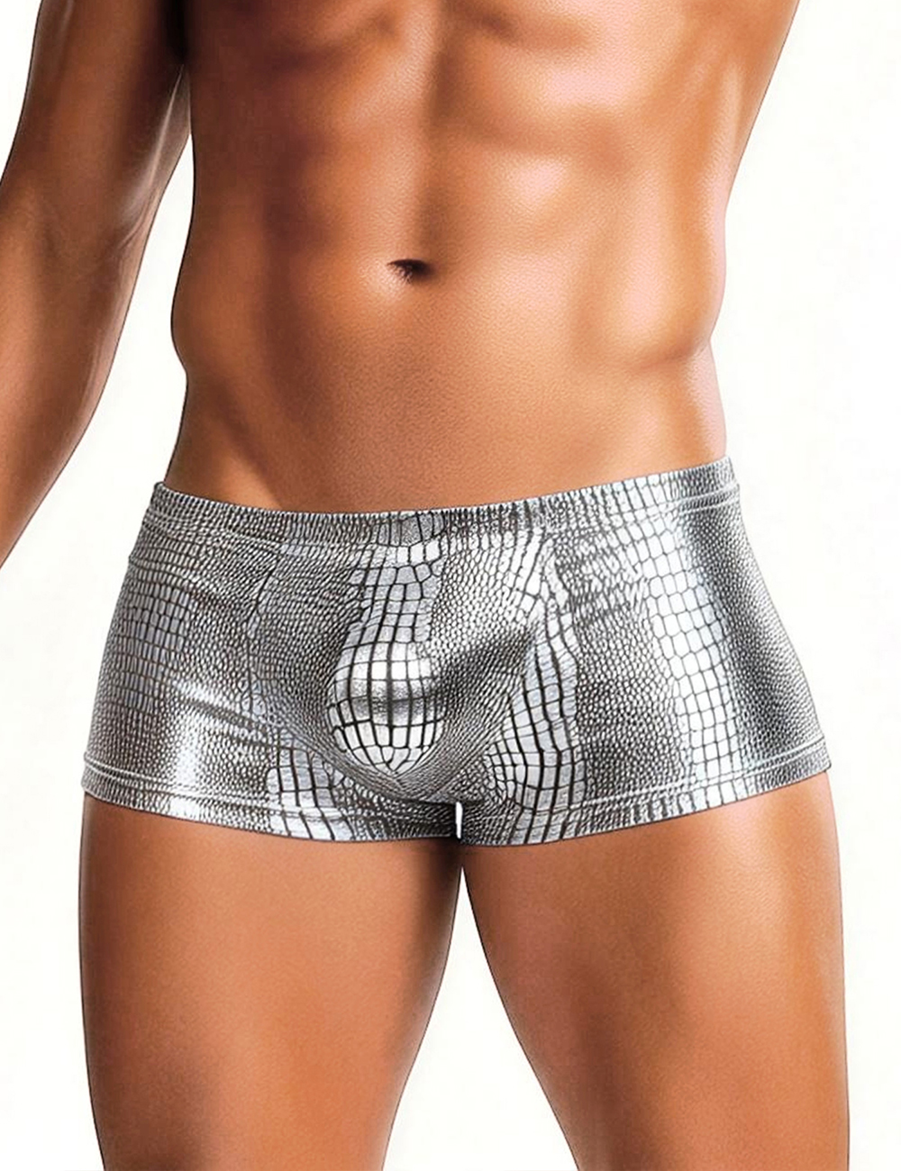 Product Name Silver Low-rise Faux Snakeskin Men Boxer