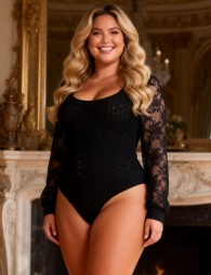 Home > Wholesale Plus Size Lingerie > Black Long Sleeve Openable Crotch Mesh Bodysuit