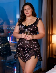 Home > Wholesale Plus Size Lingerie > Black Heart Printed Mesh Ruffled Sexy Nightdress