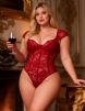 Home > Plus Size Teddy Supplier > Burgundy Lace Square Neck Short Sleeves Open Crotch Bodysuit