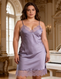 Home > Plus Size Pajamas Supplier > Plus Size Sexy Fashion Silk Satin Lace High Quality Women Pajama