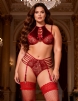 Home > Plus Size Bra Wholesale > Plus Size Velvet Floral Lace Patchwork Gartered Lingerie Set With Underwire