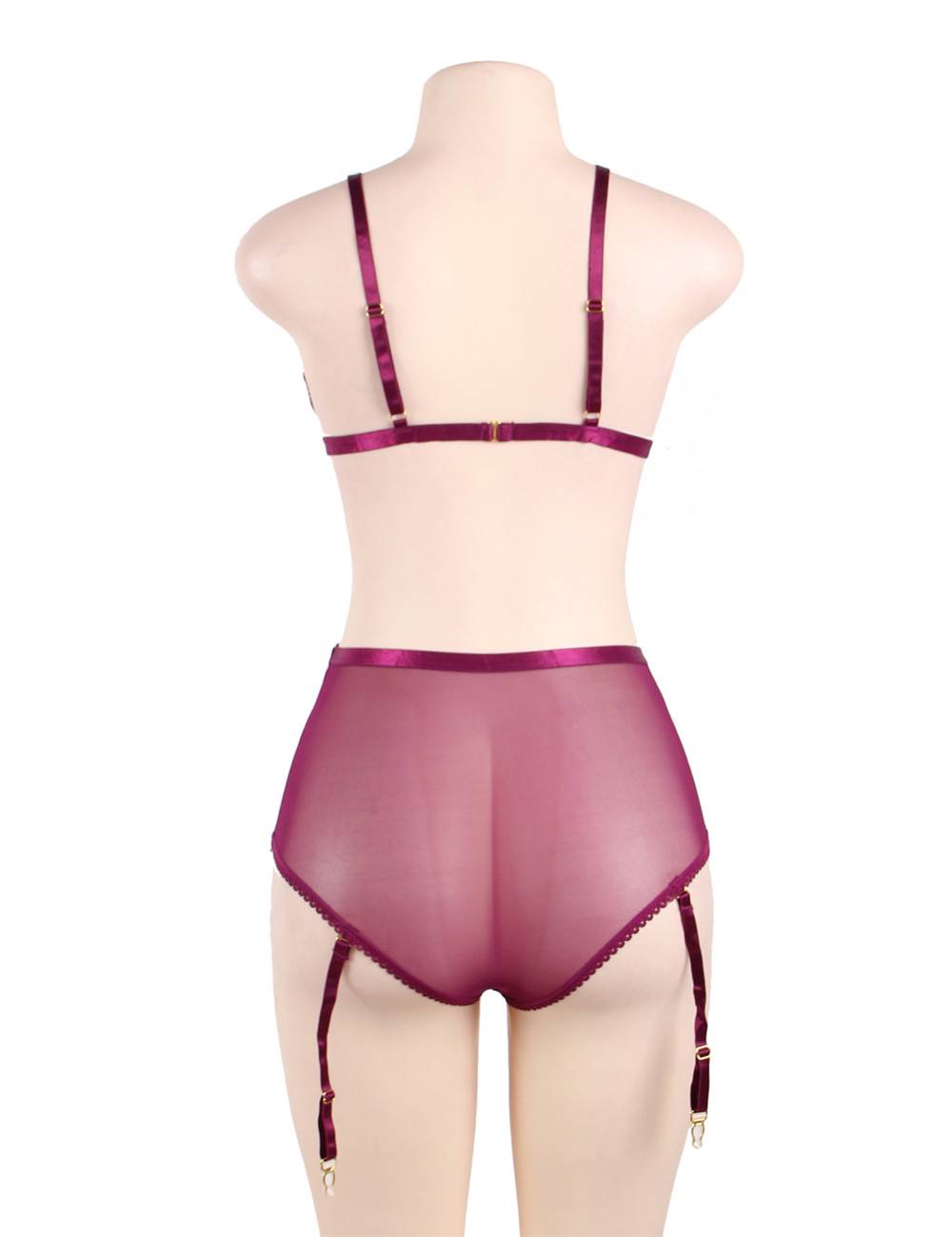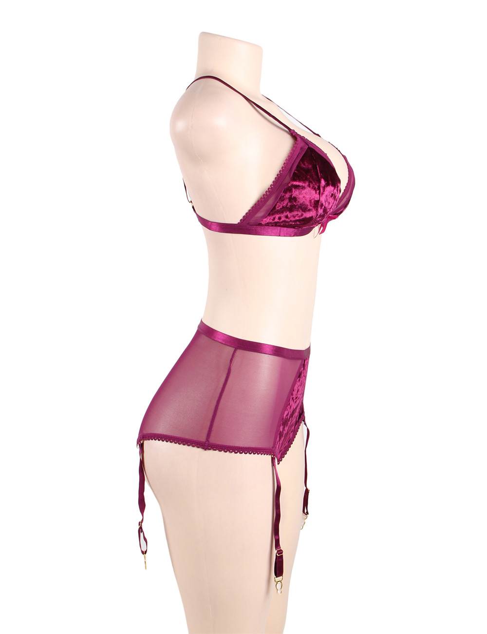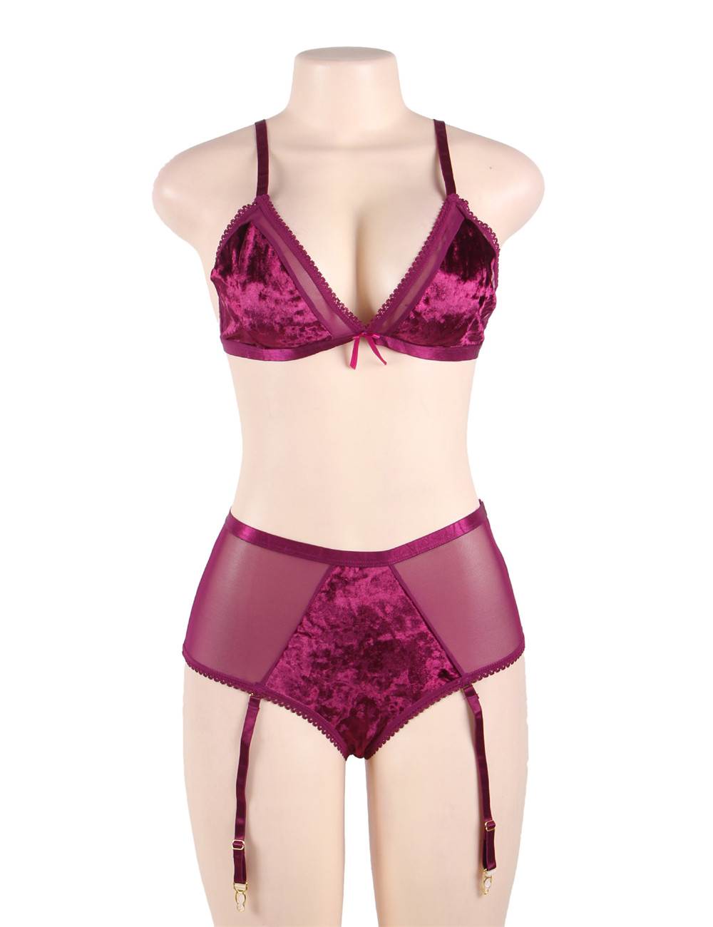 Product Name Plus Size Soft Velvet With A Sheer Mesh Trim Bra Set