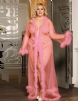 Product Name Sexy Red Robe With Belt Plush Edging Mesh Plus Size Nightdress