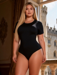 Home > Plus Size Teddy Supplier > Black Simple Short Sleeves Open Crotch Bodysuit