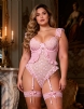 Home > Plus Size Teddy Supplier > Pink Sexy Jacquard Lace Mesh Crotchless Bodysuit With Garter