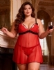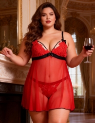 Home > Wholesale Plus Size Lingerie > Plus Size Red Lace High-end Delicate Embroidery Babydoll Lingerie Set